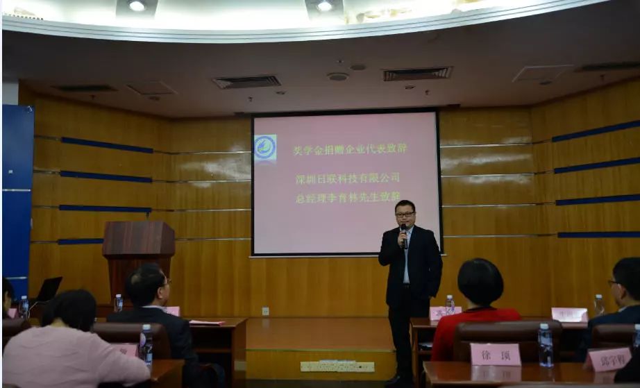 **學(xué)院黨委滿杰書記代表全體獲得獎(jiǎng)學(xué)金的同學(xué),向日聯(lián)科技表示衷心的感謝!感謝公司專門設(shè)立“劉駿獎(jiǎng)學(xué)金”,鼓勵(lì)和支持我們學(xué)生更好地完成學(xué)業(yè)。你們這種創(chuàng)業(yè)精神和服務(wù)社會(huì)、回報(bào)社會(huì)的經(jīng)營(yíng)理念非常值得我們敬佩。同時(shí)希望獲獎(jiǎng)同學(xué)不驕不躁,繼續(xù)努力學(xué)習(xí),創(chuàng)造優(yōu)異成績(jī),為將來(lái)回報(bào)社會(huì)做好準(zhǔn)備,絕不辜負(fù)日聯(lián)科技公司對(duì)我們的殷切期望。