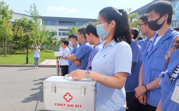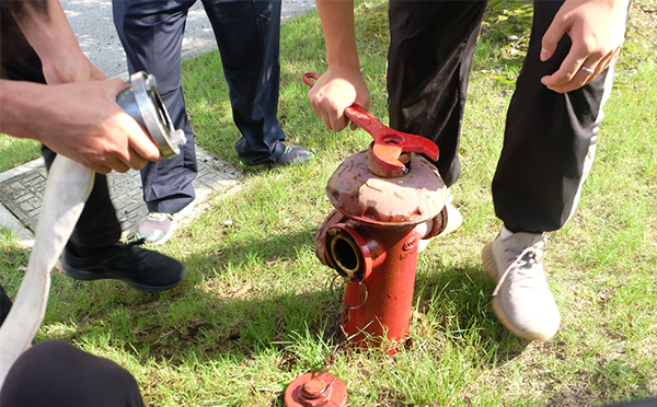 隨著警報(bào)聲響起,各部門員工在緊急小組成員們帶領(lǐng)下進(jìn)行有序疏散撤離,到達(dá)安全區(qū)域后人員按部門整齊站隊(duì),各部門負(fù)責(zé)人清點(diǎn)人數(shù)并報(bào)告撤離情況,緊接著開展了滅火器、消防栓、急救包等各項(xiàng)滅火救援器材的實(shí)戰(zhàn)演練。