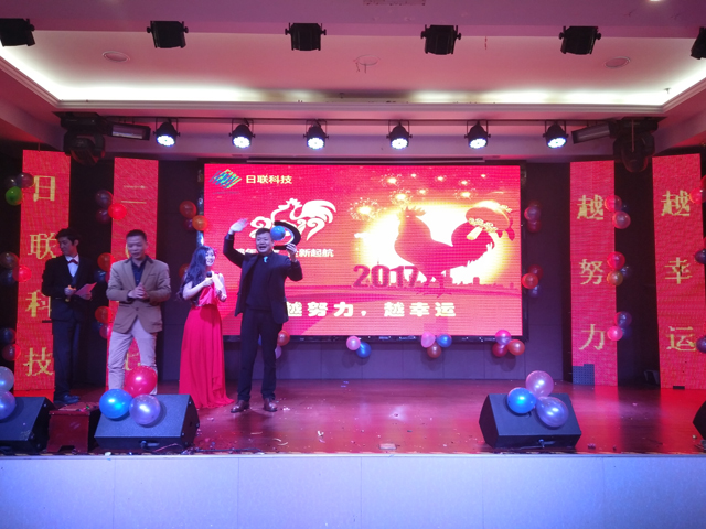 日聯(lián)科技(深圳)公司于2017年1月13日在東海明珠大酒店召開2016年度表彰大會暨2017年春節(jié)聯(lián)歡晚會,特邀參會的有日聯(lián)攜手合作伙伴、供應(yīng)商、代理商以及深圳日聯(lián)全體同仁。日聯(lián)科技董事長劉駿和集團總經(jīng)理倪文俊先生對前來參加會議暨晚會的同仁表示祝賀與感謝。