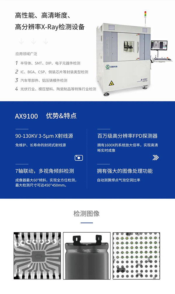 本次展會,日聯(lián)科技在N1館A5-2展位展出了電子半導體X-Ray、X-Ray點料系統(tǒng)以及智能化的解決方案。在電子智能制造業(yè)面臨產線升級及智能化改造之際,以高質量X-Ray檢測設備及智能化解決方案為電子制造保駕護航。